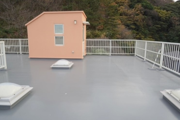 以前のように継ぎ目がなく弾力性があり、地震などの揺れにも対応できる防水施工に仕上げました。