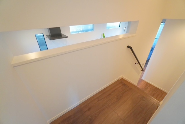 玄関からのアプローチにスキップフロアーを採用することで、2階リビングのような空間がうまれます。