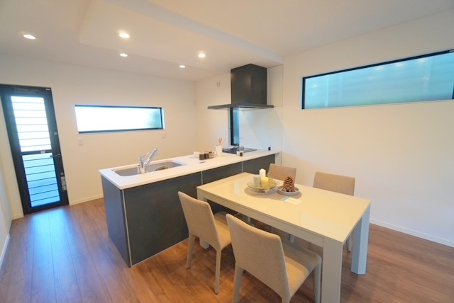 オープンキッチンにする事で、リビングとの一体感を感じられ開放感が生まれます